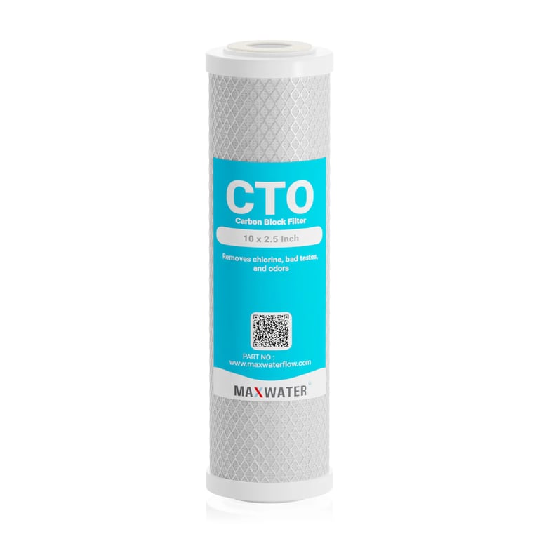 Cartucho CTO de alta densidad para mejorar sabor, olor y claridad. Ideal para viviendas rurales que buscan un filtrado avanzado antes de purificadores o sistemas de ósmosis.